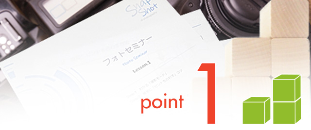 階段を上るように、個人のレベルに合わせて無理なく1段づつ積み重ねていくステップアップ式のフォトレッスン。