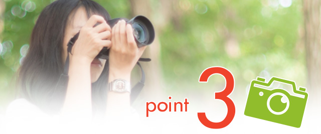 カメラを買ったばかりで右も左も分からない入門者の方も、安心して受講していただけます。その理由は、マンツーマンのステップアップ式レッスンなので、分からないことはその場で気軽に質問して解決!気の合うお友達と一緒にグループレッスンも可能です!
